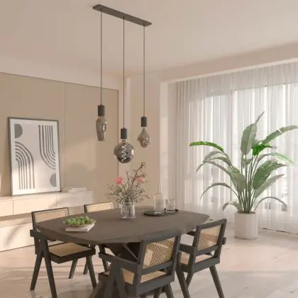 Die Calex Retro Pendelleuchte Cordset Rechteckig Metall Schwarz |incl. Kabel 2 Meter - Geeignet für 3xE27 sorgt für eine angenehme Ausleuchtung und punktet durch modernes Design. Diese Leuchte ist speziell zur Montage an der Decke vorgesehen.