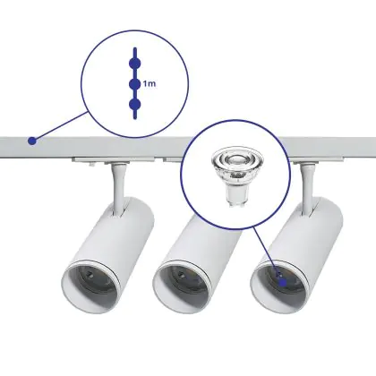 Aufgrund des geringen Energieverbrauchs von nur 3W sparen Sie mit dem LED-Schienenstrahler von Markenlos mindestens 50 % Ihrer Energie - sowie Instandhaltungskosten gegenüber einem herkömmlichen Halogenstrahler.