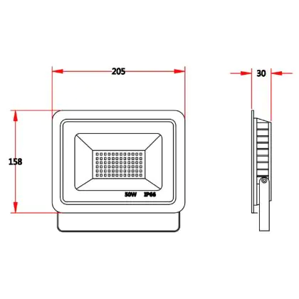 Beschreibung LED-Scheinwerfer 50W 5000lm 100D - 830 | IP66 - Symmetrisch