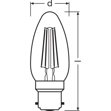 Beschreibung Ledvance Classic Performance LED Glühbirne B22d Kerze Fadenlampe Klar 4W 470lm - 827 Extra Warmweiß | Ersatz für 40W