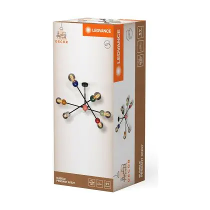 Die Ledvance Decor Glaskugel Stahl Pendelleuchte Mehrfarbig | Geeignet für 6X E27 sorgt für eine angenehme Ausleuchtung und punktet durch modernes Design. Diese Leuchte ist speziell zur Montage an der Decke vorgesehen.