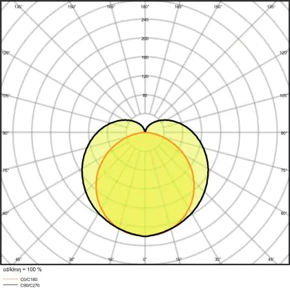 Mit einem Abstrahlwinkel von 140 Grad eignet sich die Deckenleuchte von Ledvance sehr gut dafür, große Flächen zu beleuchten. In 2,4 Metern Höhe angebracht ergibt sich so ein Lichtkegel mit einem Durchmesser von über 9 Metern.