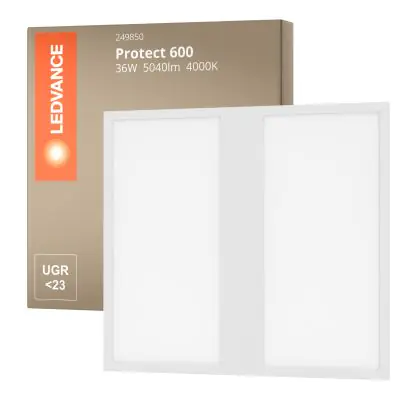 Das Ledvance LED Panel Protect 600 36W 5040lm - 840 Kaltweiß | 60x60cm - UGR ist ein modernes LED-Panel, welches Licht in der Farbtemperatur 4000K - Kaltweiß ausstrahlt und mit einer langen Lebensdauer punktet. Mit dem hochwertigen Panel, welches ideal als Allgemeinbeleuchtung verwendet werden kann, sparen Sie nicht nur Energiekosten, sondern steigen auch auf eine langlebige und flackerfreie Lichtlösung um.