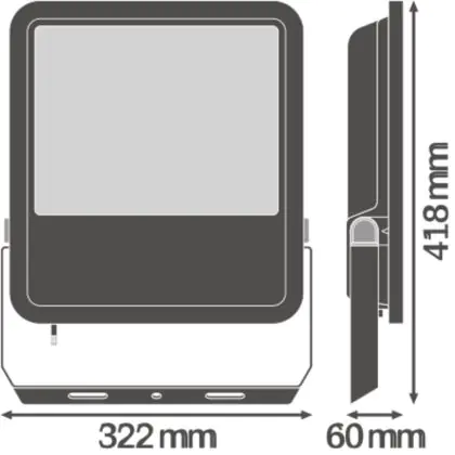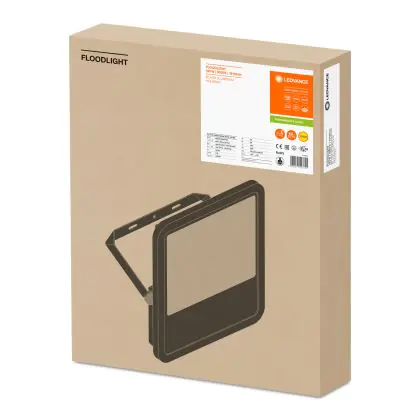 Der Ledvance LED-Scheinwerfer 165W 3000K 18150lm IP65 | Schwarz - Symmetrisch ist in stilvollem Schwarz gehalten. Dank der hohen Robustheit kann die Leuchte problemlos in Außenbereichen eingesetzt werden.