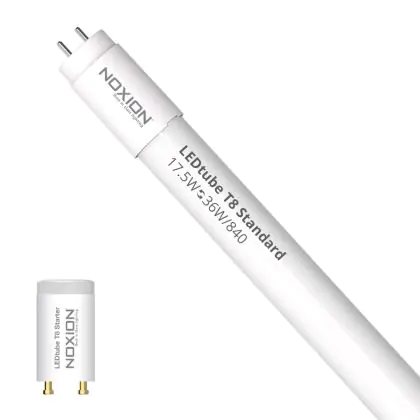 Die T8 LED-Röhren von Noxion gibt es in verschiedenen Farbtemperaturen: Extra Warmweiß (2.700 K und weniger), Warmweiß (3.000 K), Kaltweiß (4.000 K) und Tageslichtweiß (6.500 K). Diese Röhre strahlt ihr Licht in 4000K - Kaltweiß aus.