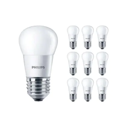 Die Mehrfachpackung 10x Philips Corepro LED Lustre E27 Kugel Matt 5W 470lm - 827 Extra Warmweiß | Ersatz für 40W ist eine effiziente E27 LED-Lampe und der perfekte Ersatz für Ihre konventionellen 40W Lampen mit E27-Sockel. Zudem strahlt sie Licht in der Farbtemperatur 2700K - Extra Warmweiß aus und punktet durch eine lange Lebensdauer.