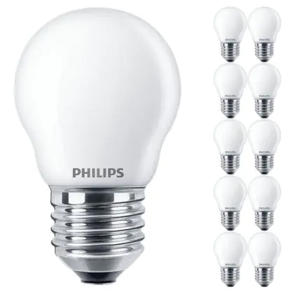 Die Mehrfachpackung 10x Philips Master Value LED Lustre E27 Kugel Matt 3.4W 470lm - 927 Extra Warmweiß | Höchste Farbwiedergabe - Dimmbar - Ersatz für 40W ist eine effiziente E27 LED-Lampe und der perfekte Ersatz für Ihre konventionellen 40W Lampen mit E27-Sockel. Zudem strahlt sie Licht in der Farbtemperatur 2700K - Extra Warmweiß aus und punktet durch eine lange Lebensdauer.