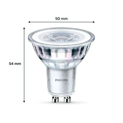 Der GU10 LED-Strahler von Philips weist eine Farbtemperatur von 4000K - Kaltweiß auf. Sein Anwendungsgebiet können Sie somit ganz einfach ermitteln: Lampen mit einem niedrigen Kelvin-Wert (2.000 K - 3.000 K) eignen sich ideal für Umgebungen, die Sie mit einer gemütlichen Beleuchtung versehen möchten, zum Beispiel ein Hotel, eine Bar, ein Restaurant oder die eigenen vier Wände.