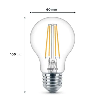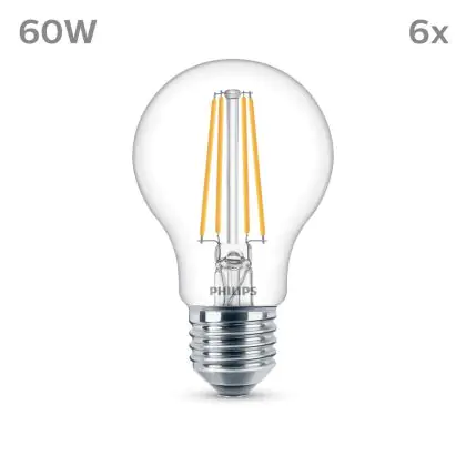 Die Mehrfachpackung 6x Philips Glühbirne LED E27 Birne Fadenlampe Klar 7W 850lm - 840 Kaltweiß ist eine effiziente E27 LED-Lampe mit Retrodesign und der perfekte Ersatz für Ihre konventionellen W Lampen mit E27. Zudem strahlt sie Licht in der Farbtemperatur 4000K - Kaltweiß aus und punktet durch eine lange Lebensdauer.