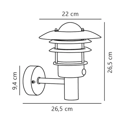 Beschreibung Nordlux Lønstrup 22 Wandleuchte Stahl und Glas Grau | 220mm - IP44 - Geeignet für E27 - Bewegungs- und Lichtsensor