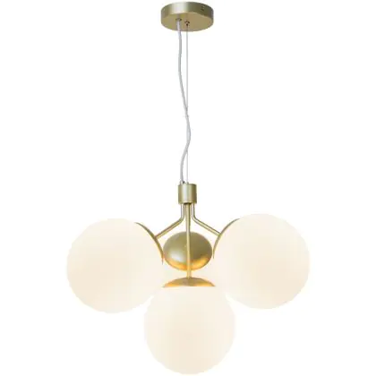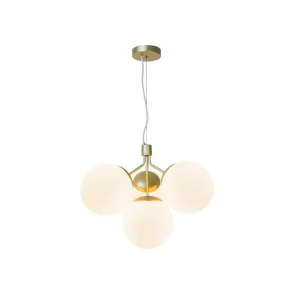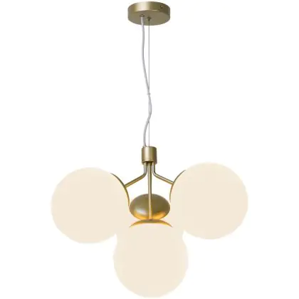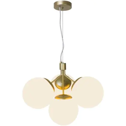 Bei der Pendelleuchte Ivona handelt es sich um eine Neuinterpretation eines klassischen Kronleuchters, wobei das traditionelle Design durch einen etwas organischeren und moderneren Look akzentuiert wird. Mit 4 Glaskugeln strahlt Ivona ein tolles Licht aus, das für einen modernen und extravaganten Stil sorgt. Die Kombination aus Messing und Opalglas schafft einen glamourösen und eleganten Designausdruck. Das Glas dieser Leuchte ist mundgeblasen und handgefertigt. Aufgrund dieses einzigartigen Verfahrens können im Glas Luftblasen entstehen und die Dicke des Glases kann ebenfalls variieren. Dies verleiht dem Glas seinen einzigartigen Charakter und sein lebendiges Erscheinungsbild.