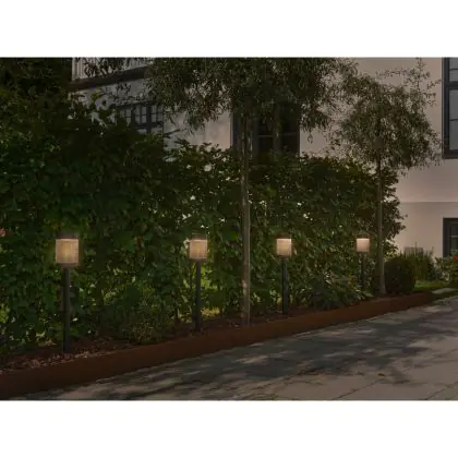 Die Solarleuchte kommt mit der Farbtemperatur 3000K - Warmweiß daher. Als Faustregel gilt: Je niedriger der Kelvinwert, desto gemütlicher wirkt das Licht.