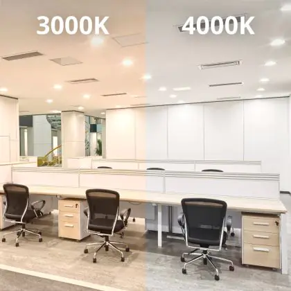 Diese Deckenleuchte hat eine Lichtfarbe von 4.000 Kelvin. Dies entspricht kaltweißem Licht, welches perfekt geeignet für konzentrierte Arbeitsumgebungen ist. Hierzu zählen vornehmlich Büros und Räumlichkeiten im Bildungssektor. Private Anwendungsbereiche sind beispielsweise Küchen oder Arbeitszimmer.