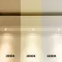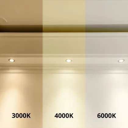 Der LED-Deckenspot kommt mit der Farbtemperatur 3000K - 4000K - 6000K CCT daher. Als Faustregel gilt: Je niedriger der Kelvinwert, desto gemütlicher wirkt das Licht.