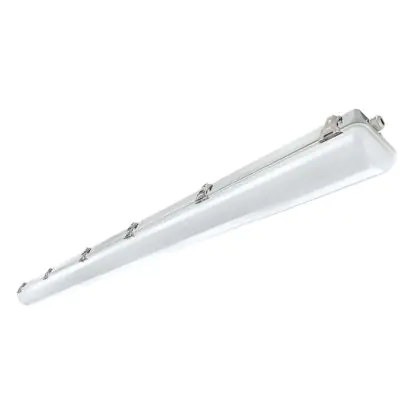 Die Noxion LED-Feuchtraumleuchte der Reihe Pro ist 150 cm lang. Sie ersetzt zwei herkömmliche Leuchten à 58 Watt und benötigt dabei selbst lediglich 66 Watt. Diese LED hat eine tageslichtweiße Farbtemperatur (6.500 Kelvin) und ist über DALI dimmbar. Sie ist IP66- und IK08-klassifiziert und kann daher sowohl innen als auch außen verwendet werden. Dank der praktischen Durchgangsverdrahtung können Sie mehrere Leuchten miteinander verbinden.