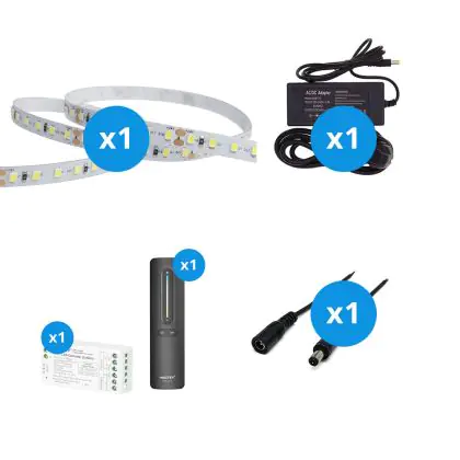 Der große Vorteil dieses Komplettsets ist, dass Sie alles Zubehör haben, das Sie benötigen, um die besten Lichtakzente für Ihr Zuhause oder Ihre Geschäftsräume zu setzen. Sie müssen nicht nach dem richtigen Zubehör suchen, sondern nur alle Elemente miteinander verbinden. Anschließend stecken Sie den Stecker in eine normale Steckdose in Ihrem Haus. Alles dazu erfahren Sie in unserem Installationsblog. Dieses Set enthält: