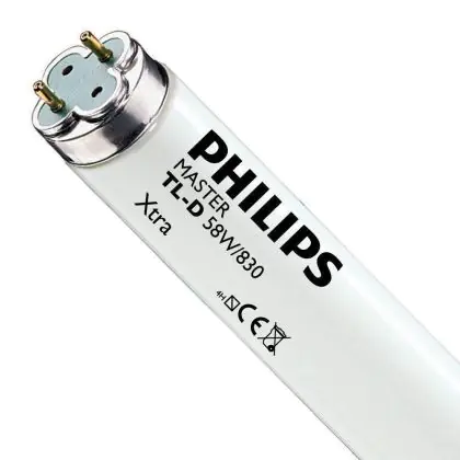Philips TL-D Xtra sind Leuchtstoffröhren mit einem Durchmesser von 150cm. Diese Lampen haben eine sehr lange Lebensdauer von durchschnittlich 36.000 Stunden und sind sehr zuverlässig. Mit ihrem G13 Lampensockel und einer Länge von 150cm sind sie einfach in die passenden Leuchten zu installieren.