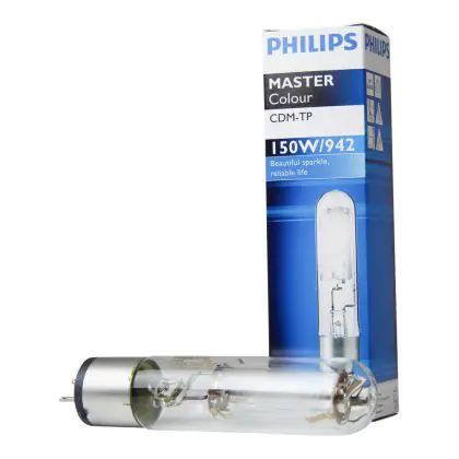 Die Philips CDM-TP 150W 942 PGX12-2 (MASTERColour) Entladungslampen verfügen über einen Farbwiedergabeindex von 89-90Ra. Diese Lampe spendet ein helles weißes Licht (4200K). Der UV-Filter sorgt dafür, dass wärmeempfindliche Objekte keinen Schaden tragen und sich nicht verfärben.